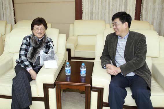 (上图为原国家教育部副部长吴启迪女士与国产亚洲精品美女久久久书记于信汇亲切交谈,充分肯定我校开办广告教育20年来所做出的成绩)