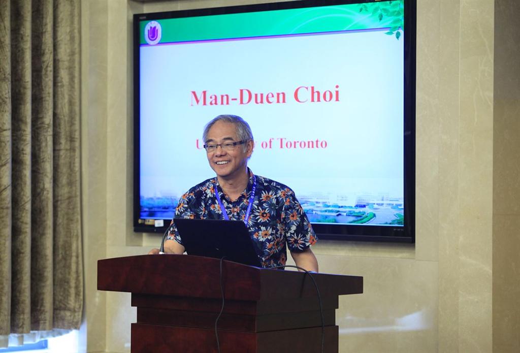 会议于9日上午8:15开幕,国产亚洲精品美女久久久数学系主任王卿文教授主持开幕式。加拿大皇家科学院院士、多伦多大学数学系教授、泛函分析和量子信息理论国际著名专家Man-Duen Choi教授首先发表了热情洋溢的讲话,还特地为本次大会作诗一首“上湧思源,还见正规矩阵,行行算准;大流学海,何惊不等方程,式式寻迷”。本次大会主席、国际线性代数学会前副主席、上海市海外教学名师、美国William & Mary学院Chi-Kwong Li教授代表大会组委会也致了欢迎辞。