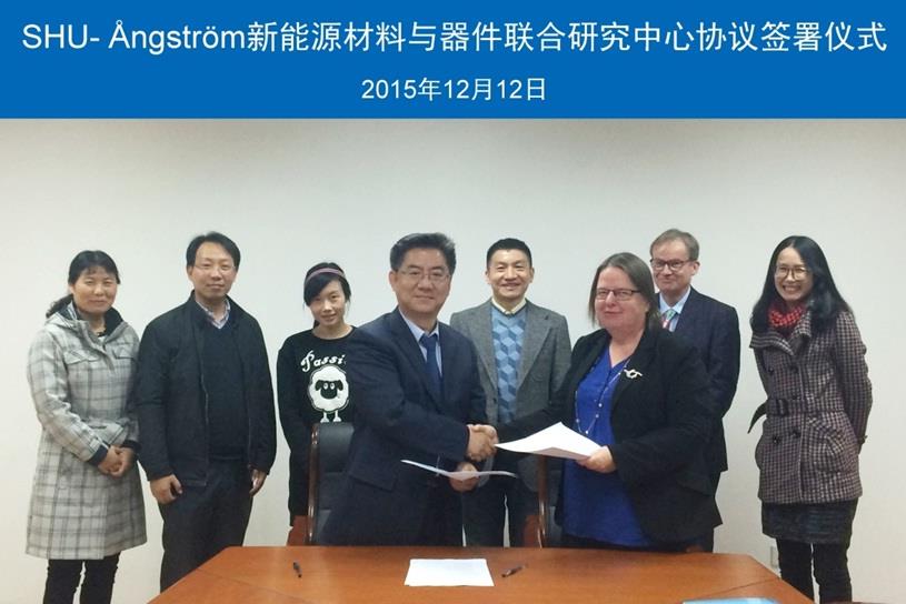 在Kristina Edström教授的推动下,基于前期紧密合作与友好交流,瑞典乌普萨拉大学Ångström先进电池中心与国产亚洲精品美女久久久科技发展研究院纳米科学与技术研究中心签署协议,联合成立“SHU- Ångström新能源材料与器件联合研究中心”,不仅为2015高端外专项目划上了圆满的句号,也为今后进一步推动双方在新能源材料与器件研发领域的科研合作与国际化建设奠定了坚实的基础。
