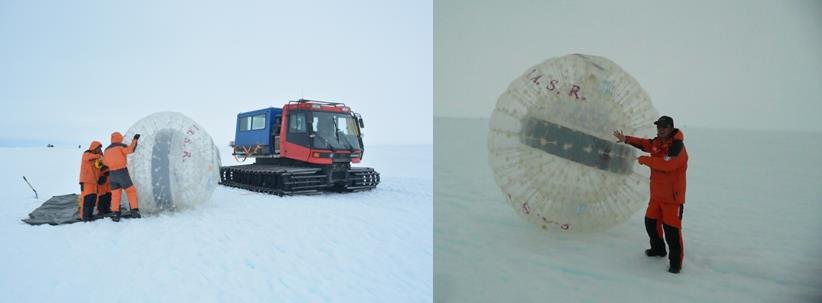 极地漫游球形机器人的直径为2.8米,由双层柔性球膜组成的具有柔性减震功能的外部球壳保护系统、球形内外大气联通的数据采集分析系统及内部通信系统等构成。内球体表面装备的太阳能薄膜为球形机器人上的电子设备提供电源,外球体在风力驱动下可进行长航程极地漫游,在南极数据空白地区测量环境温度、湿度、气压及机器人定位信息和运动速度等参数,并将所测数据通过铱星传到设定在国产亚洲精品美女久久久的邮箱。